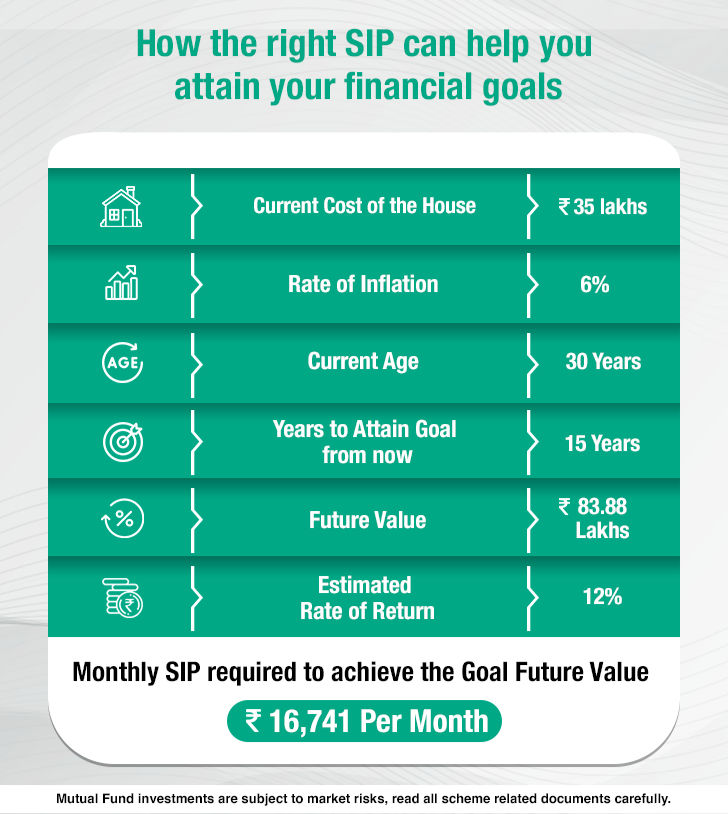 For instance, if you hold a long-term goal to build a corpus (education, child's marriage, buying a house, and more) that will occur after 15 years, know the current cost of this goal.